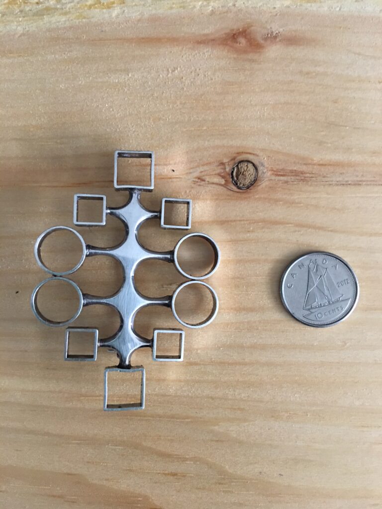 SOLD: Here come the 60’s. These fun and unique earrings are handcrafted in sterling silver. The circles each measure 28mm but one earring measures 75mm long and the other 55mm long! Yes, they are both different, and that is what makes them so much fun to wear.